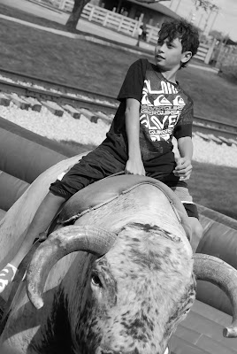 texas trip wouldnt be complete without a Mechanical bull ride!!! here, bronson goes for the 8 seconds..